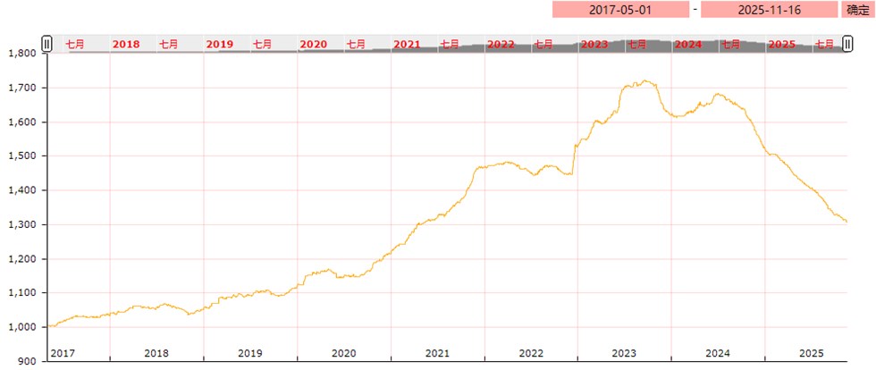 据亳州中药材价格监测显示,2025年11月份第二期亳州中药材价格大盘指数为1310.50点,与上期1314.62相比,下跌4.12点,跌幅0.31%。结合12类分类指数呈现“2涨4跌6持平”的态势。其中果实种子类1144.88点,上涨0.31%;其他加工类1032.82点,上涨0.14%;根及根茎类1368.59点,下跌0.32%;花类1097.85点,下跌0.25%;菌藻类1194.98点,下跌1.43%;动物类1590.66点,下跌1.64%。