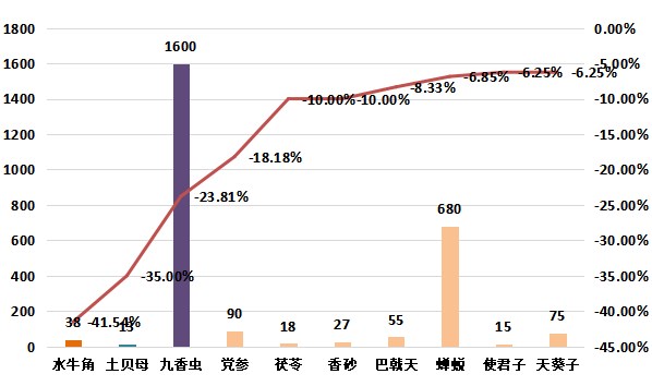 九香虫:近期货源走动缓慢,高价行情小幅回落,现正品货1600元左右。