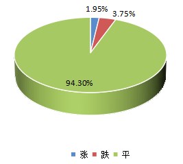 本期大盘品种涨跌环比分析显示,涨价品规占比1.95%,跌价品规占比3.75%,平价品规占比94.3%。近期药市货源走销态势依旧低迷,随着新货干品批量上市,行情波动的品种有所增多。当前市场参与各方仍以观望为主,整体低迷行情仍在持续运行。
